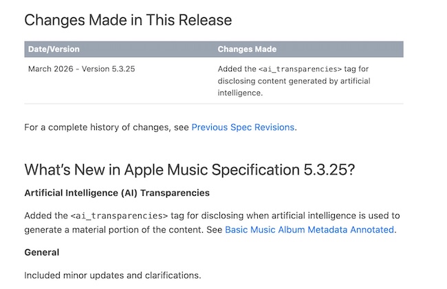 Apple Music ha lanzado lo que llama Etiquetas de Transparencia, un sistema de etiquetas de divulgación que los sellos discográficos y distribuidores de música pueden comenzar a aplicar al contenido entregado a Apple Music de inmediato y que deberán usar cuando entreguen contenido nuevo en el futuro. La medida fue anunciada en un boletín distribuido a los socios de la industria el pasado 4 de marzo.