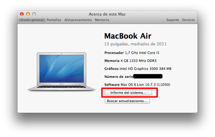 Ahora pulsa en el botón Informa del sistema, selecciona en la ventana que te aparecerá la opción Hardware, en el último campo tienes el UDID