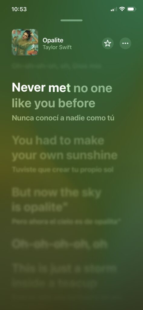 Tras ver el tweet de Apple Music, pensé: es el momento de escuchar el nuevo disco de Taylor Swift. Para mi sorpresa, no me aparecía la opción de traducción de las letras y lo primero que pensé: ¿también ha bloqueado esta opción la Comisión Europea esta opción? No, esta vez no son ellos.