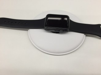 La carga en el dock es en el centro de la base, lo cual permite que el reloj se cargue completamente en su parte posterior, o se puede dar la vuelta a una posición vertical para permitir la carga en «modo de mesita de noche.»