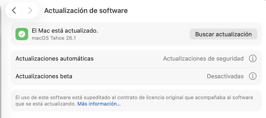 Si has actualizado tu equipo a macOS Tahoe 26.1 como he hecho yo, es posible que no supieras que a partir de ahora macOS descargará e instalará automáticamente algunas actualizaciones de seguridad en segundo plano, independientemente de la configuración de Actualización de Software.
